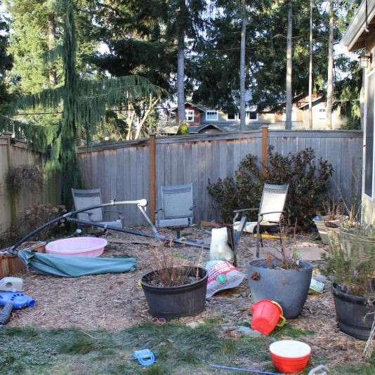 A young family with toddlers and two indoors cats, living in custom-built home wanted to transform their rather bare-bones landscape into an outdoor extension of their home. Client’s wish list / design goals –